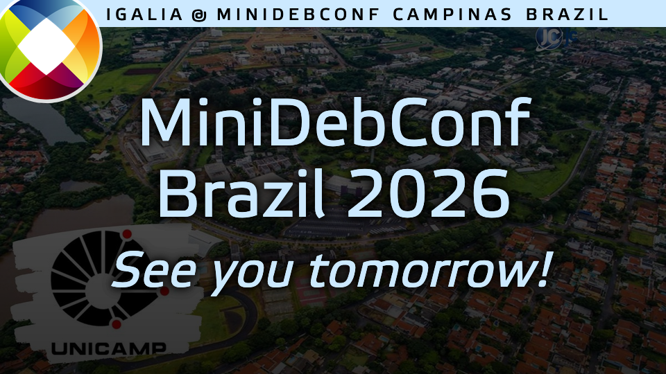 MiniDebConf Campinas 2026 (Brazil) starts tomorrow at the State University of Campinas. Full schedule is available here: https://campinas.mini.debconf.org/schedule/. Most of the talks will be streamed online. #debian #debconf #miniDebConfCampinas #brazil #04
